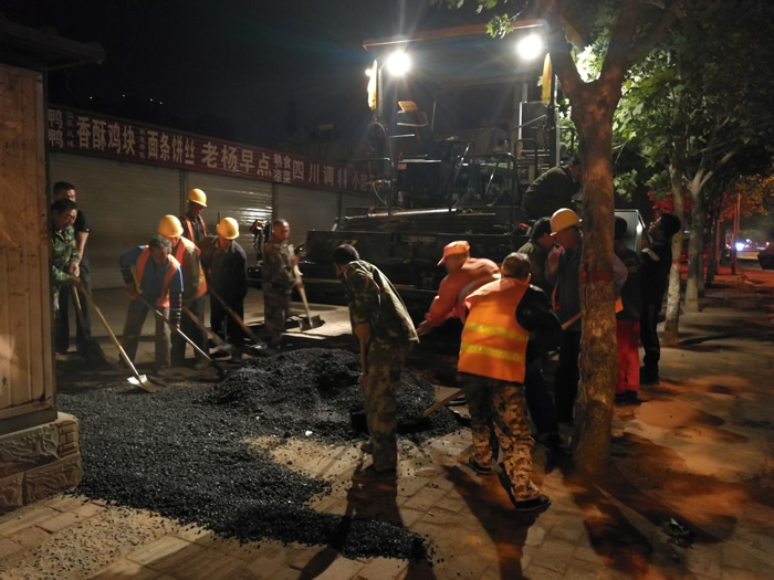 按照正定縣領導及住建局要求,為緩解交通壓力,滿足群眾生產(chǎn)、生活需要,方便市民出行,公司所有創(chuàng)建文明城項目均實行“三不”原則,即不圍檔,不斷交,不停業(yè),所有道路瀝青混凝土攤鋪均在晚10時到凌晨6時完成。