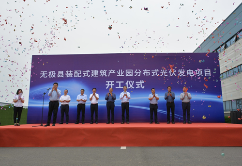 | 5月19日上午,由市政建設(shè)總公司所屬能源投資發(fā)展有限公司投資建設(shè)的無極縣裝配式建筑產(chǎn)業(yè)園分布式光伏發(fā)電項(xiàng)目開工建設(shè)。市國資委黨委委員、副主任楊劍,城發(fā)投集團(tuán)黨委委員、副總經(jīng)理李宗志,市政建設(shè)總公司總經(jīng)理馬瑞山,市住建集團(tuán)董事長張瑞彬等領(lǐng)導(dǎo)及施工單位、監(jiān)理單位代表出席開工儀式。李宗志同志宣布項(xiàng)目開工。