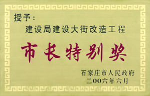 我公司2006年承建的建設大街工程,10個月的工期僅用100天便優(yōu)質(zhì)高效地完成了施工任務,獲石家莊市“市長特別獎”。